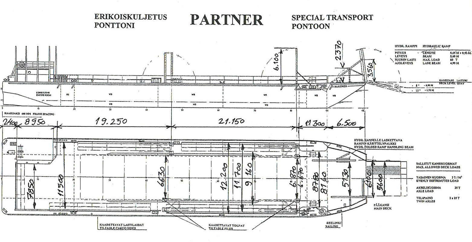 Hydraulinen ramppi: 5,65 m (+0,92 m) x 5,60 m/60 tn
